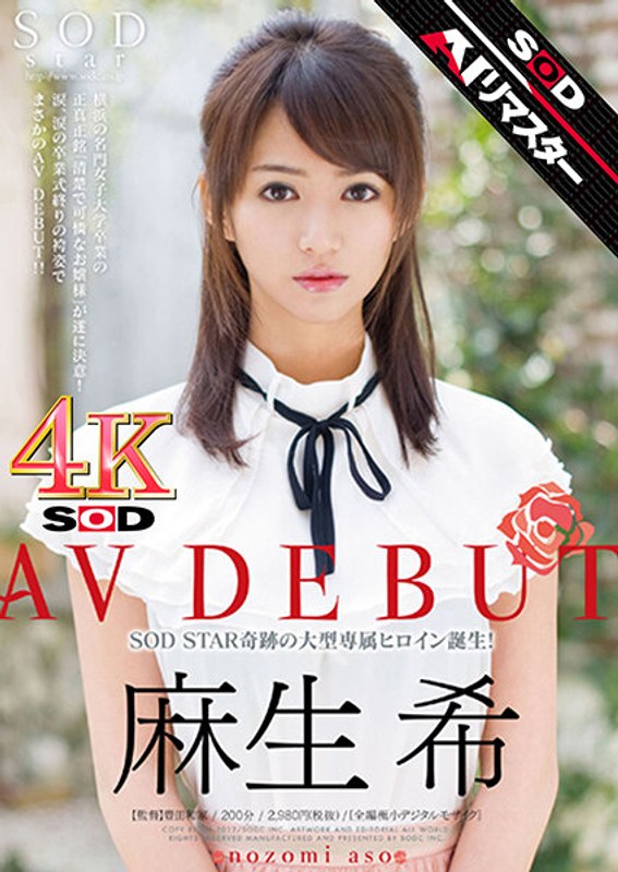 【 AI リマスター版 】麻生希 AV DEBUT 【名作復刻 SOD AIリマスター】SOD STAR奇跡の大型専属ヒロイン誕生!横浜の名門女子大学卒業の正真正銘、「清楚で可憐なお嬢様」が涙、涙の卒業式終りの袴姿でまさかのAV DEBUT!!しかも、超極小顔10頭身の「スーパー美少女」!これまで全く未開発の「170cmEカップ最強BODY」をガチピストンでどんどんエッチに開発中!本気で